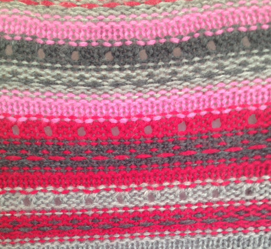How you do it depends on your skill at handling several strands at the same time, like knitting a Fair Isle sweater. Some patterns and colours are in play all the time, others only make an occasional appearance, but they all help to create a colourful and satisfying whole.